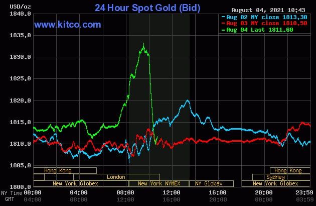 با انتشار این اخبار و داده ها طلا تمام دستاورد های روزانه خود را از دست داده و همانطور که در بالا اشاره کردیم قیمت آن به ۱۸۱۰ دلار رسید.