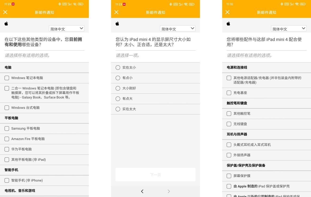 اپل در نظرسنجی اخیر خود از کاربران آیپد مینی در چین خواسته نظر خود را در مورد ابعاد نمایشگر آیپد مینی ۴ مطرح کرده و به برخی سوالات دیگر که به بهبود تولید محصولات و لوازم جانبی این شرکت کمک میکنند، پاسخ دهند.