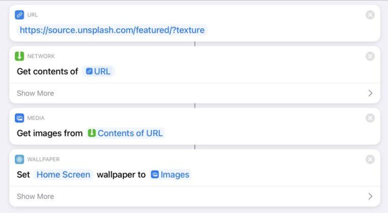 در واقع کاربران میتوانند با استفاده از این قابلیت اپ Shortcuts کاری کنند که تصویر پسزمینهی آیفون یا آیپدشان بعد از گذشت مدت زمان مشخصی و به صورت خودکار عوض شود. حتی کاربران میتوانند که قابلیت اکشن اپ Shortcuts را با سایتی مانند Unsplash ترکیب کنند تا با انجام این کار تصویر پسزمینهی دستگاهشان به صورت خودکار از میان میلیونها تصویر رایگان و باکیفیت انتخاب شود.