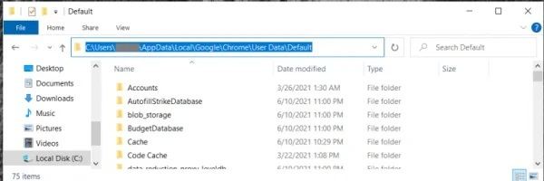 C:Users [Username]AppDataLocalGoogleChromeUser DataDefault
