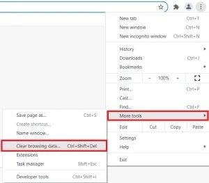 2-گزینه More tools و سپس Clear browsing data را انتخاب کنید.