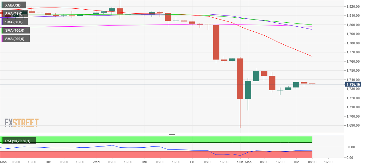 شاخص قدرت نسبی (RSI) نیز با وجود اینکه در شرایط بازیابی قیمت قرار دارد همچنان نشان دهنده این است که احتمال ادامه حرکت نزولی طلا وجود دارد و فلز زرد می تواند به سمت کف قیمتی 1700 دلار حرکت کند.