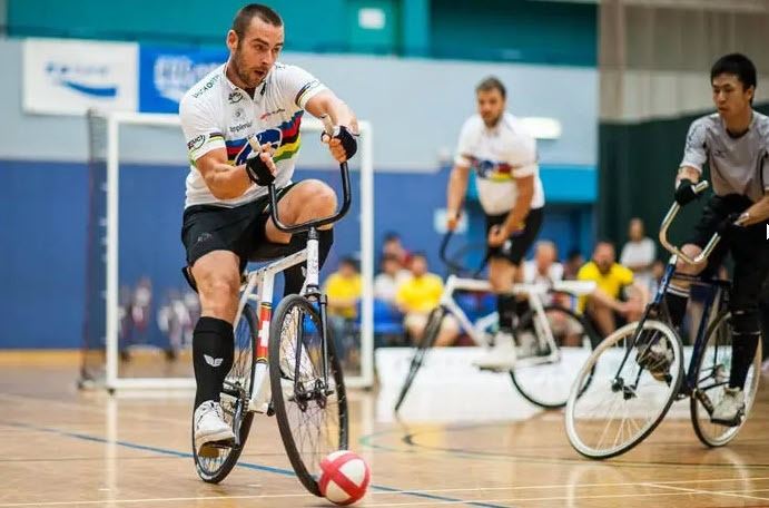 سایکلبال مسابقهای بین دو تیم دو نفره است که سوار بر دوچرخه هستند و در تلاشاند تا با استفاده از چرخ و سر خود، توپ را وارد دروازه حریف کنند. بازیکنان فقط در زمان دفاع میتوانند از دستهای خود استفاده کنند. استفاده از دست در زمان حمله، خطا محسوب میگردد.