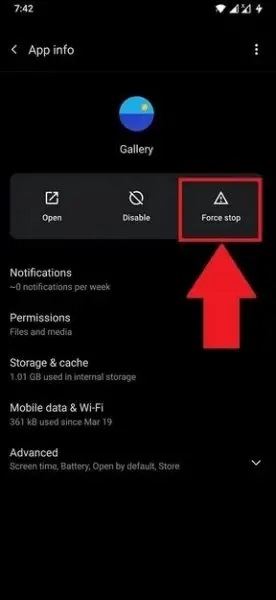اگر هنگام اجرای برنامه خاصی با مشکل چرخش صفحه مواجه میشوید توصیه میکنیم برنامه را یک بار به اجبار متوقف کرده و سپس مجددا اقدام به اجرای آن کنید. برای انجام این کار کافیست تا یک بار به مدت طولانی روی آیکون برنامه مورد نظر را فشار داد و نگه دارید؛ سپس گزینه “App Info” را انتخاب کنید. زیر منوی “App Info” گزینه بستن اجباری برنامه “Force Stop” را مشاهده خواهید کرد.