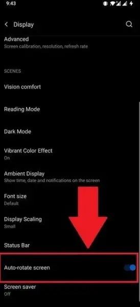 یکی از رایجترین اشتباهاتی که کاربران گوشیهای اندرویدی انجام میدهند، این است که گزینه چرخش خودکار نمایشگر (Auto-Rotate) را غیرفعال میکنند. همین حالا تنظیمات خود را چک کنید تا مطمئن شوید این ویژگی روی گوشی هوشمند شما فعال است. برای انجام اینکار کافیست که مسیر Settings -> Display را در پیش بگیرید و طبق تصویر زیر این گزینه را فعال کنید.