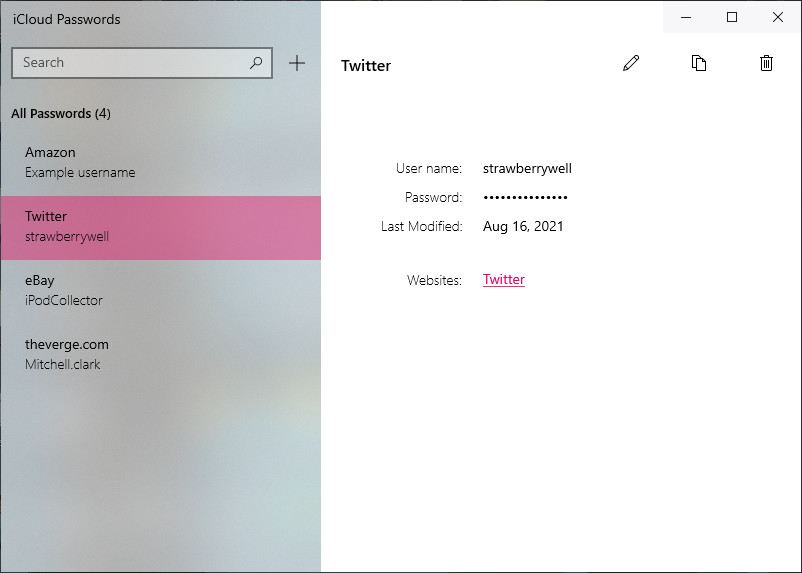اپلیکیشن جدید iCloud Passwords به کاربران ویندوز اجازه دسترسی به قابلیتهای متنوعی از جمله جستجو به دنبال گذرواژههای ذخیرهشده، بهروزرسانی گذرواژهها، افزودن گذرواژه جدید و حذف اطلاعات ورودی را میدهد.
