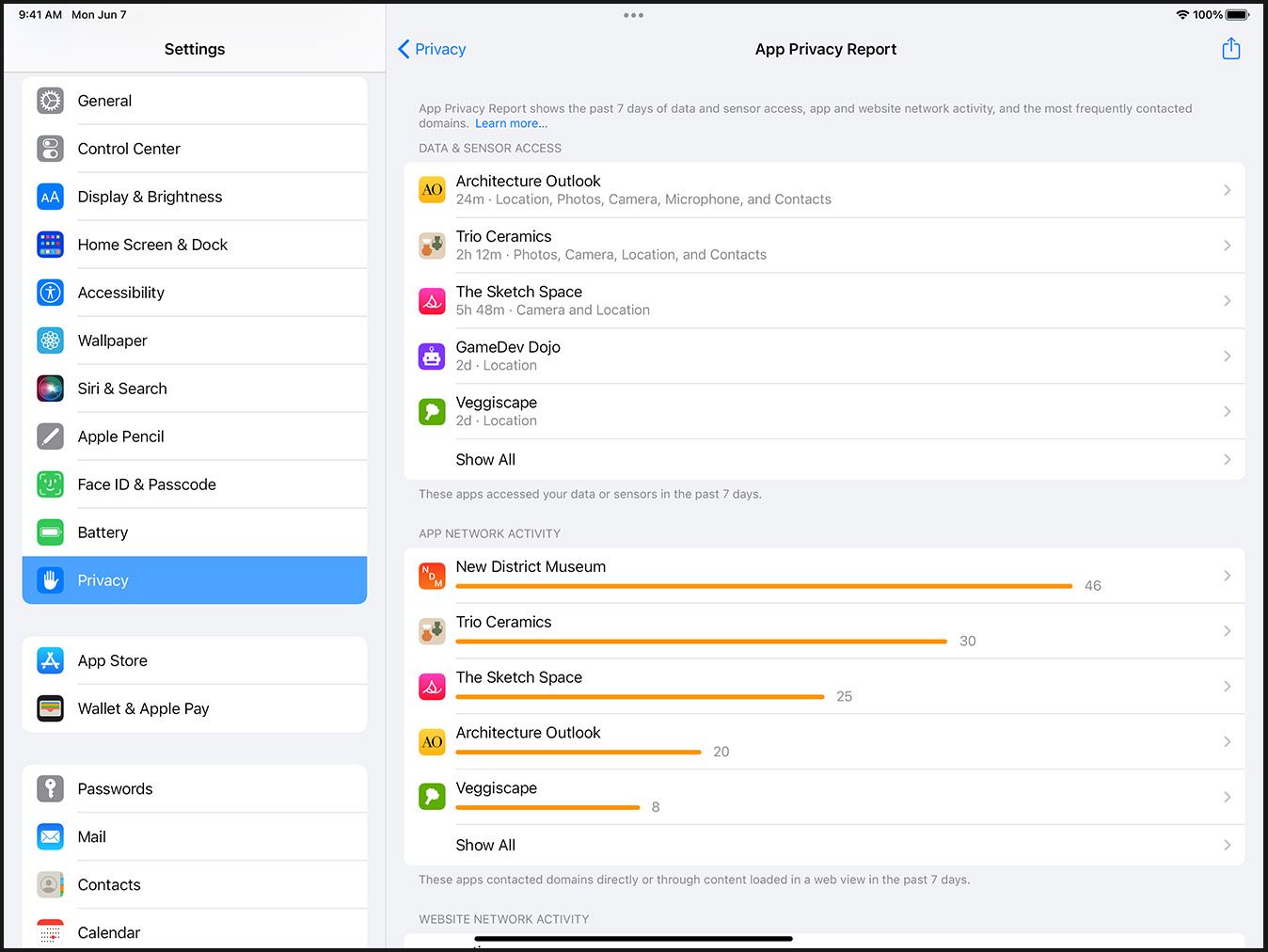 اپل به صورت پیوسته در حال افزودن امکانات جدید مرتبط با حفظ حریم خصوصی به سیستم عامل خود است و App Privacy Report یکی از جدیدترین قابلیتهای iOS 15 محسوب میشود که در همین راستا معرفی شده است. بخش مجزایی در قسمت تنظیمات برای ویژگی مذکور در نظر گرفته شده است که جزئیاتی پیرامون دادهها و حسگرهای مورد استفاده توسط هر اپلیکیشن در بازه زمانی هفت روز گذشته را فراهم میکند. همچنین کاربران میتوانند از تعداد دفعات اتصال هر اپلیکیشن به سرورهای خود مطلع شوند. متاسفانه فعلاً این قابلیت نیز در دسترس عموم دارندگان آیفون قرار نخواهد گرفت و توسعه دهندگان نیز تنها میتوانند از آن به شکل یک فایل متنی استفاده کنند و رابط گرافیکی آن هنوز در دسترس نیست.