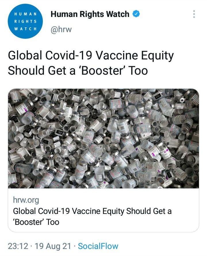 دیدهبان حقوق بشر در واکنش به تزریق دز سوم واکسن در کشورهای ثروتمند معتقد است: تزریق دز سوم در حالی اتفاق میافتد که بسیاری از کشورها به واکسن دسترسی ندارند.