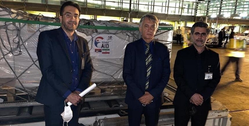 حضور سفیر صربستان در کنار مسئولان گمرک ایران حین تحویل محموله اهدایی واکسن کرونا