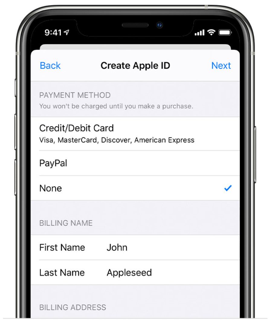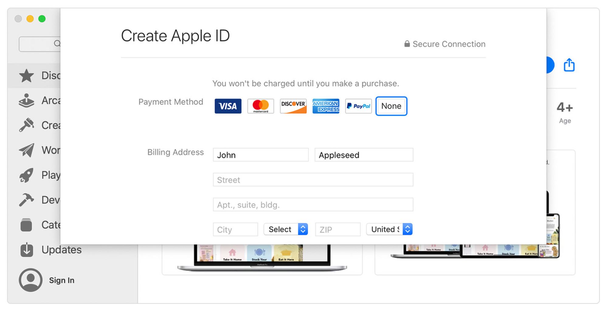 می توانید بدون افزودن روش پرداخت در App Store در iPhone ، iPad یا iPod touch یا Mac یا رایانه شخصی خود ، اپل آیدی ایجاد کنید.