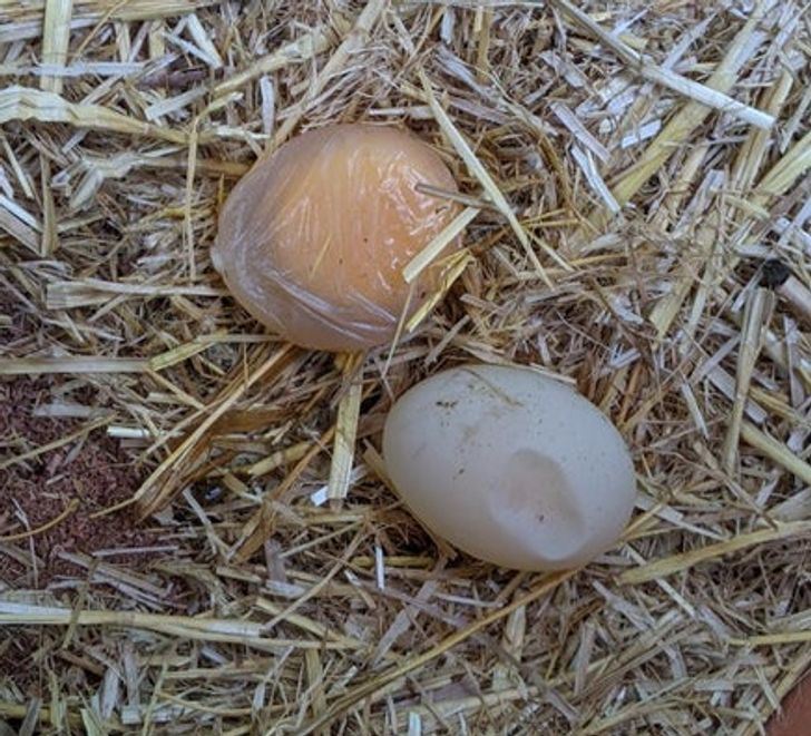 1. این مرغ یک تخم مرغ بدون پوسته و یک پوسته بدون تخم مرغ گذاشته است که هر دو نیز کاملا سالم بوده اند!