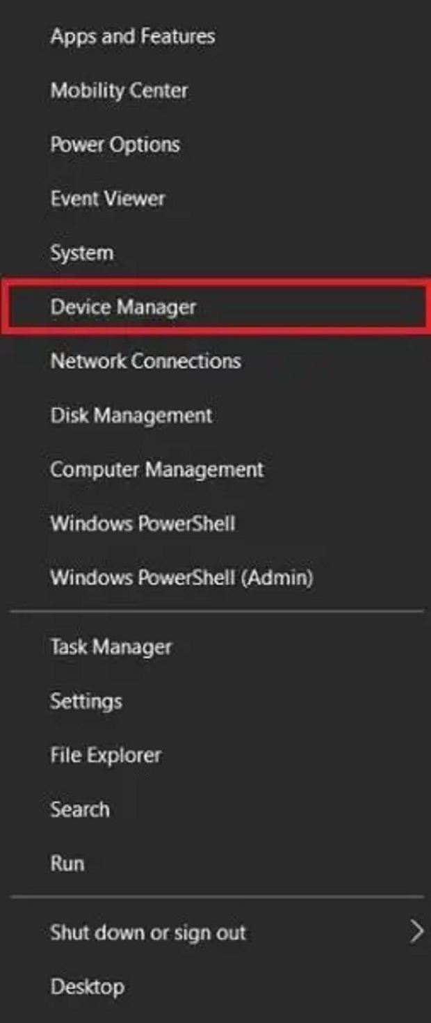 - روی آیکون Start ویندوز بروید، کلیک راست کرده و گزینه Device Manager را انتخاب کنید.