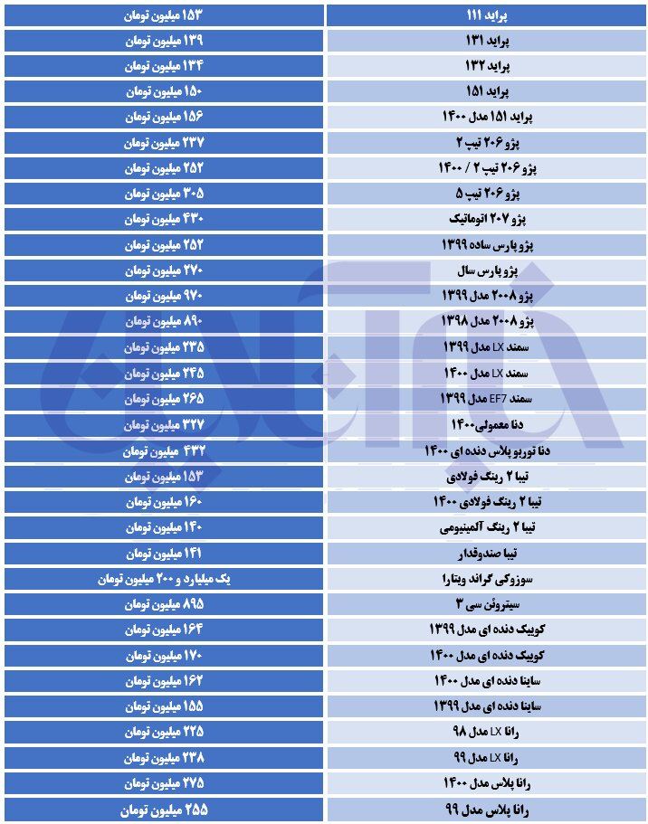 در بین خودروهای گروه پژو نیز ۲۰۶ تیپ ۲ مدل ۱۳۹۹ از ۲۳۵ میلیون تومان در روز گذشته و با افزایش قیمت ۲ میلیون تومانی امروز ۲۳۷ میلیون تومان قیمت خورده است و مدل ۱۴۰۰ این خودرو نیز در ۲۴ ساعت گذشته ۲ میلیون تومان گران شده است و در حال حاضر ۲۵۲ میلیون تومان قیمت خورده است.