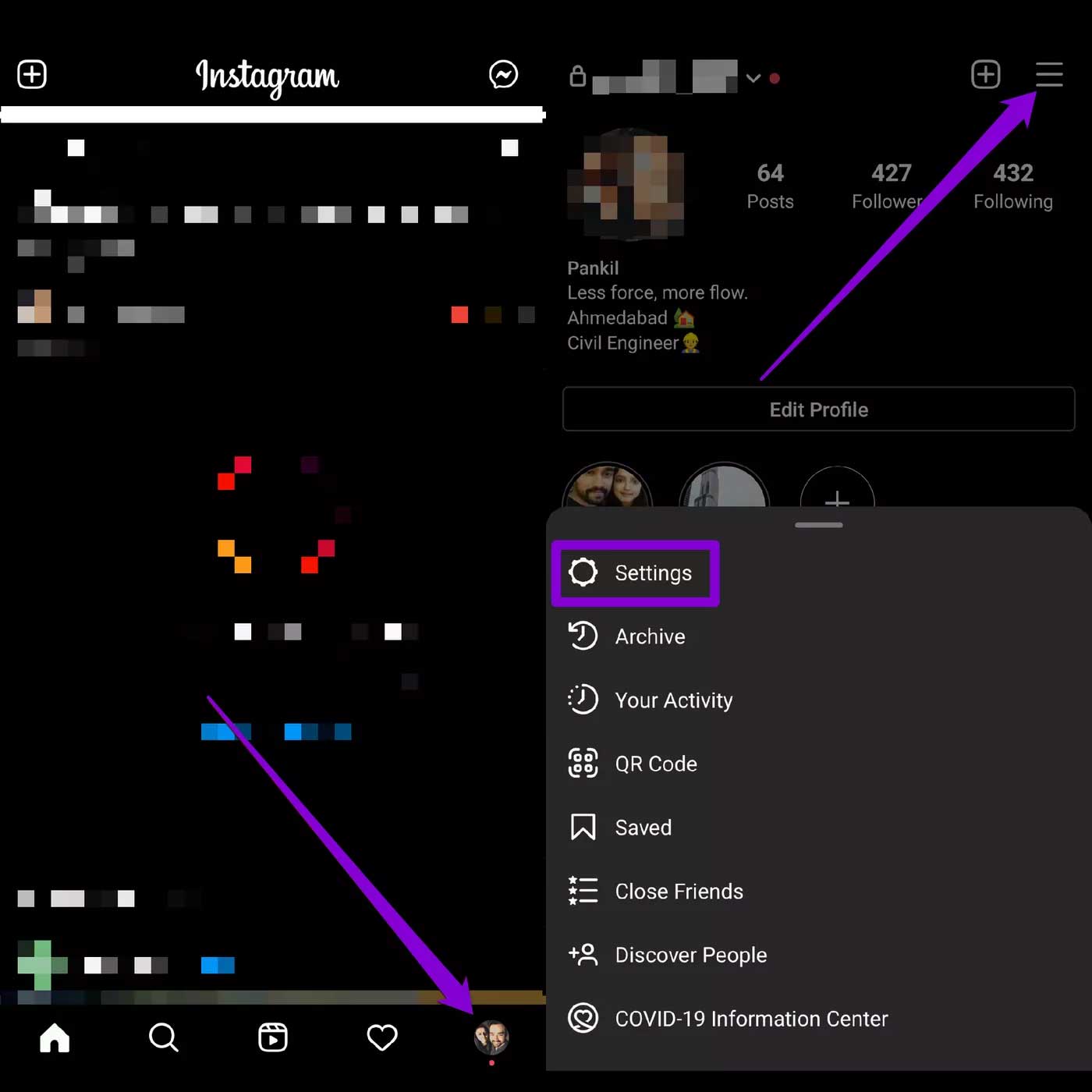 اگر در حال حاضر از یک اپلیکیشن مستقل احراز هویت برای ورود به حساب کاربری سایر شبکههای اجتماعی مانند توییتر استفاده میکنید، میتوانید از آن را برای ورود دو مرحلهای اینستاگرام هم بهره ببرید. برای شروع پس از باز کردن برنامه اینستاگرام روی موبایل خود، به تب پروفایل بروید و آیکن منو در گوشه بالا سمت راست را لمس کنید و سپس از لیست پدیدار شده گزینه Settings را انتخاب نمایید.