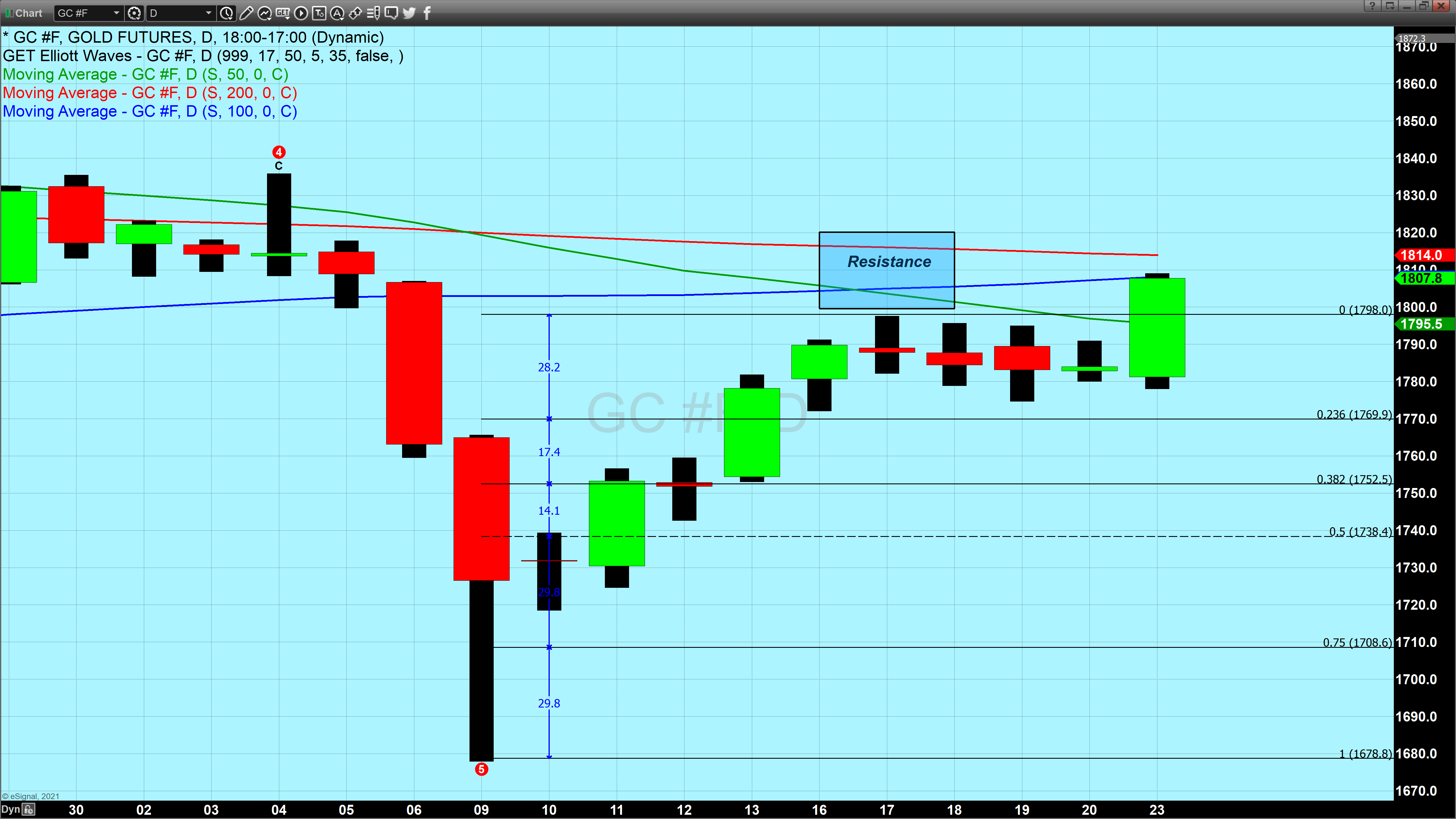 در روز گذشته قیمت طلا با افزایش چشم گیری مواجه شد و رشد 22 دلاری را از خود نشان داد. هم اکنون هر اونس طلای جهانی 1803 دلار در حال معامله است و بالا تر از سطح کلیدی و روانشناختی 1800 دلار قرار گرفته است.