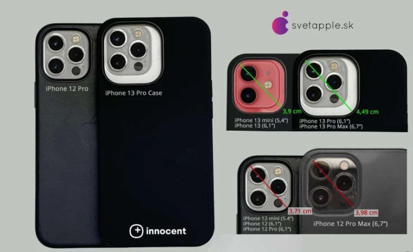 قاب های ادعایی برای سری آیفون 13 ماژول های دوربین بزرگتر و بدنه ضخیم تری را نشان می دهد. اگر این تصاویر و اندازه گیری های همراه درست باشند، ماژول های دوربین در سری آیفون 13 در مقایسه با مدل های سال گذشته بزرگتر خواهند بود. آیفون 13 مینی 4.0 سانتی متر است که به صورت مورب اندازه گیری شده است. این نسبت به ماژول 3.7 سانتی متری مورد استفاده در خط آیفون 12 سال گذشته 8.1 درصد افزایش یافته است. افزایش 15.4 درصدی بزرگتر به ماژول دوربین در iPhone 13 Pro و iPhone 13 Pro Max می رسد که اندازه بدنه را از 3.9 سانتی متر در واحدهای iPhone 12 Pro سال گذشته به 4.5 سانتی متر در سال جاری می رساند.