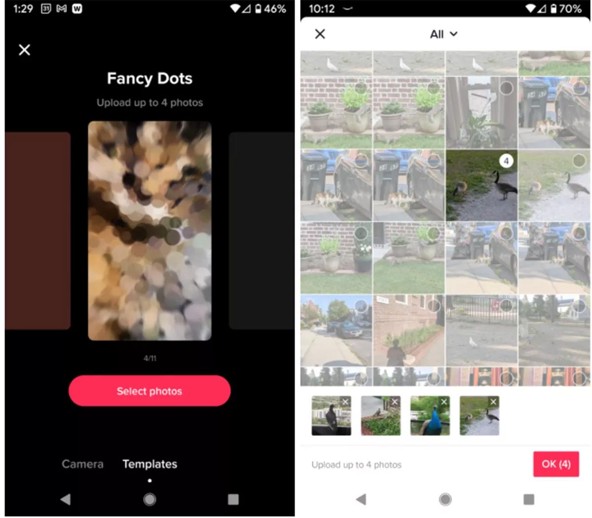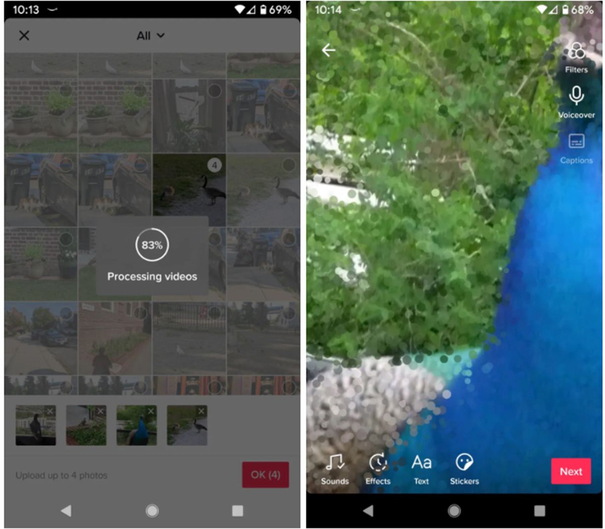بهمحض اینکه تیکتاک پردازش عکسها را بهپایان میرساند، آنها در تمپلیت قرار میگیرند.