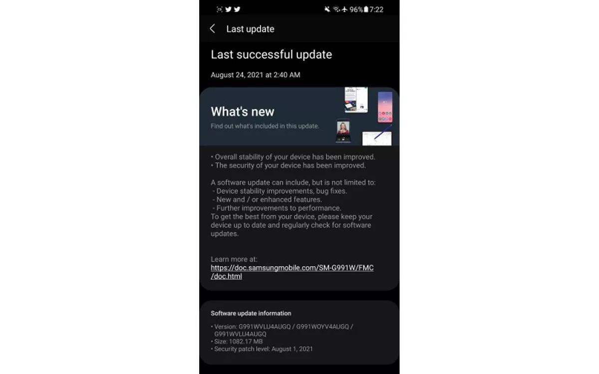 سامسونگ انتشار بهروزرسانی One UI 3.1.1 را برای سری گلکسی اس ۲۱ آغاز کرده که با وصله امنیتی آگوست ۲۰۲۱ (مرداد ۱۴۰۰) همراه است.