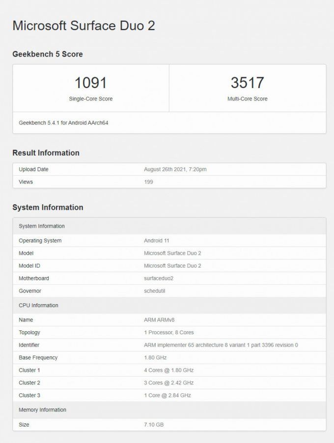 مایکروسافت سرفیس Duo 2 با تراشه اسنپدراگون 888 در پایگاه داده گیکبنچ رویت شد