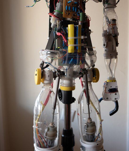 یک روز که در حال نوشیدن یک بطری دو لیتری کوکاکولا بودم به این فکر افتادم که میتوانم از این بطری برای ساخت عضله ران ربات استفاده کنم و میتوانم از یک بطری یک لیتری دیگر نیز برای ساخت ساق پا استفاده کنم. فهیمیدم میتوانم با استفاده از اشیا بازیافتی یک ربات بسازم چون آنها بسیار ارزان و مناسب هستند.