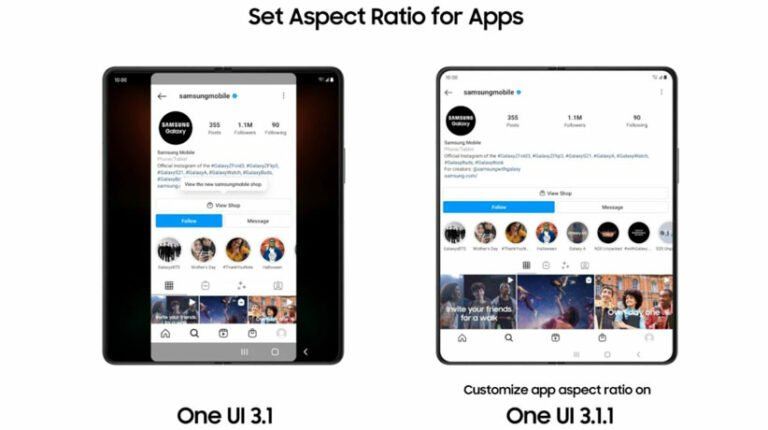 قرار است ویژگی‌های جدید بی‌شماری در به‌روز رسانی One UI 3.1.1 به سری گلکسی زد فولد و گلکسی زد فلیپ اضافه شوند. اولین ویژگی قابلیت تنظیم نسبت تصویر برای اپ‌هاست که با افزایش حداکثری آن‌ها می‌توان از نمایشگر Infinity Flex دستگاه بیشترین بهره را گرفت.