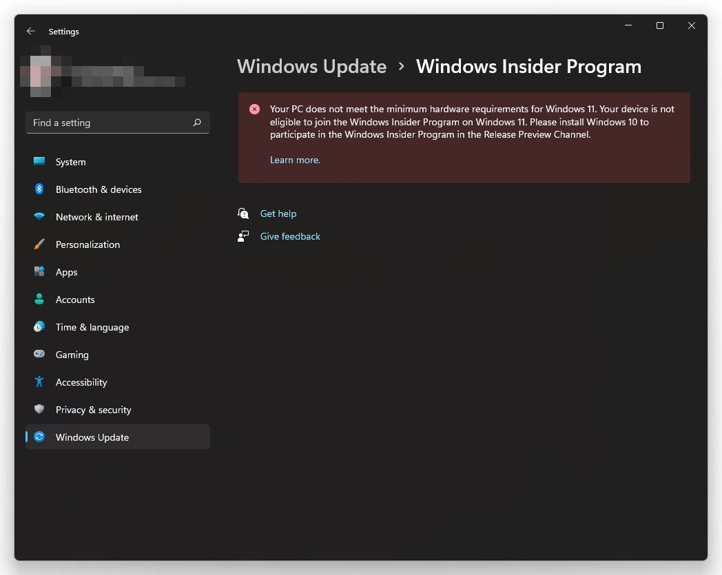 داستان پشتیبانی‌نکردن ویندوز ۱۱ از سخت‌افزارهای قدیمی تمامی ندارد و حالا این موضوع گریبان‌گیر کاربران ویندوز اینسایدر شده است. تعدادی از کاربران برنامه ویندوز اینسایدر که ویندوز ۱۱ را روی کامپیوترهای فاقد شرایط نصب کرده بود‌ند، با پیغام حذف سیستم خود از دریافت بیلد‌های آزمایشی ویندوز ۱۱ رو‌به‌رو شده‌اند. مایکروسافت از این کاربران درخواست می‌کند برای اینکه بخشی از برنامه ویندوز اینسایدر باشند، می‌توانند از ویندوز ۱۰ استفاده کنند.