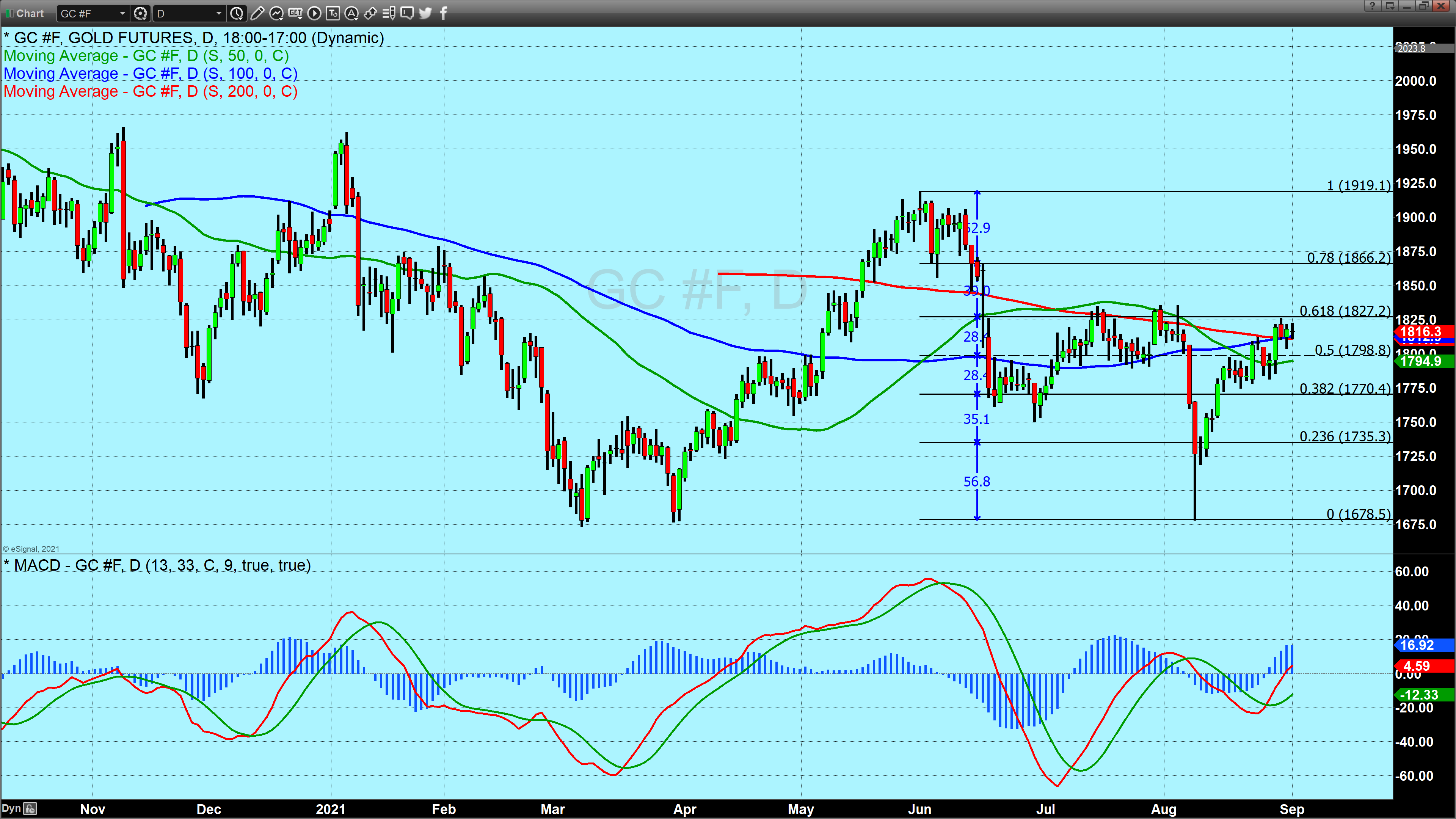 جهش قبلی قیمت طلا همانطور که گفته شد در روز جمعه هفته گذشته اتفاق افتاد و طلا از 1795 دلار به 1820 دلار رسید و بالا تر از میانگین متحرک 100 روزه و 200 روزه خود قرار گرفت. با این اتفاق از نظر فنی میانگین متحرک 100 روزه طلا در نمودار به بالاتر از میانگین متحرک 200 روزه ان منتقل شد.