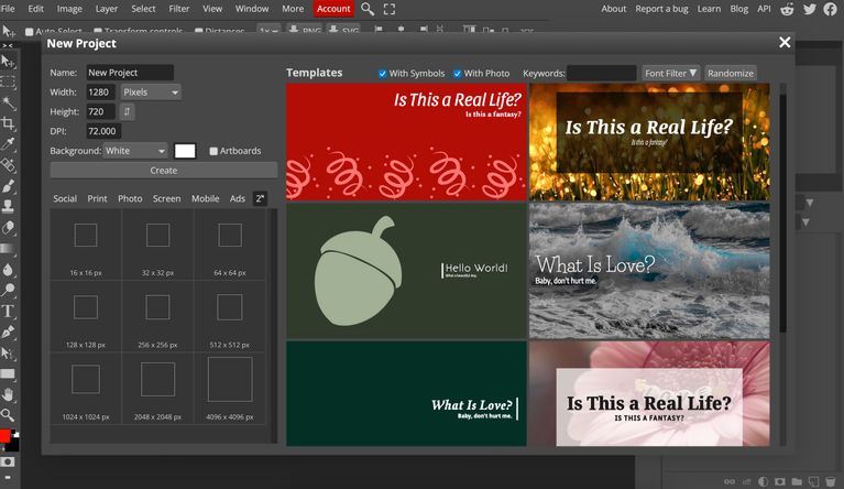 یکی از ویژگی‌های مثبت Photopea ابزارهای فوق‌العاده زیاد موجود در آن است. شما می‌توانید کار را از صفر شروع کنید و به سراغ قالب‌های PSD این نرم افزار آنلاین بروید یا اینکه تصاویر خودتان را آپلود کنید. فرقی نمی‌کند به دنبال انجام چه کاری هستید، می‌خواهید بنر یا تبلیغات طراحی کنید یا اینکه تنها به دنبال ویرایش تصاویر هستید، در تمام این سناریوها Photopea به کارتان می‌آید.