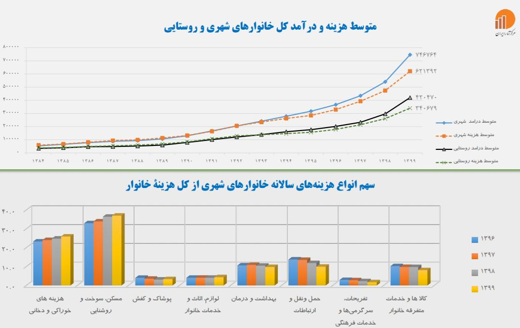 در سال‌های اخیر به واسطه تورم و افزایش قمیت‌ها، متوسط هزینه خانوار شهری و روستایی روند صعودی داشته و بیشترین هزینه برای مسکن،‌سوخت و روشنایی ثبت شده است.
