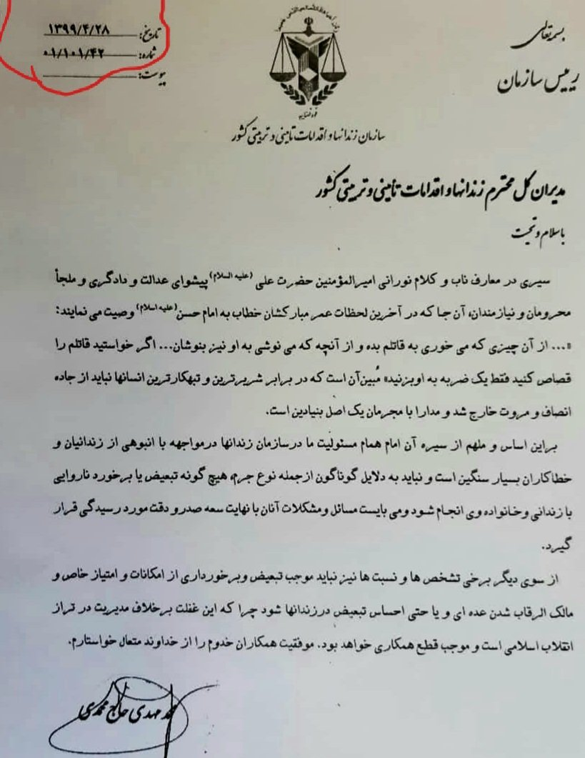 حاج محمدی به ضمیمه نامهای به مدیران کل زندانهای کشور که در آن به ممنوعیت تبعیض یا برخورد ناروا با زندانیان و خانوادههای آنان تأکید شده است، تصریح کرد: «ممنوعیت تبعیض در ارائه خدمات به زندانیان و بی اعتنائی به برخی تشخّص ها درآغازین روزهای خدمت درسازمان زندانها، ابلاغ شد.»