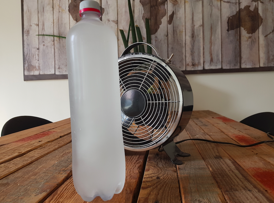 بسیار آسان است که با استفاده از یک بطری پلاستیکی خنک کننده هوای خانگی خود را بسازید. تنها چیزی که برای این مورد نیاز دارید یک فن و دو بطری آب یخ زده است. داشتن فن به خودی خود چیز خوبی است ، اما متأسفانه فقط هوای گرم می زند بدون این که اتاق را خنک کند! اما با این ترفند می توانید هوای خنکی داشته باشید ! دو بطری بزرگ را پر از آب کرده و در فریزر قرار دهید تا آب به طور کامل یخ بزند. سپس ، بطری ها را روی زمین (یا در صورت داشتن پنکه ایستاده روی میز) روی یک حوله قرار دهید. فن را پشت بطری ها قرار دهید. به این ترتیب ، فن هوای خنکی را که توسط یخ موجود در بطری ها ایجاد می شود ، به اطراف خانه می زند که باعث می شود که درجه حرارت واقعاً پایین بیاید.