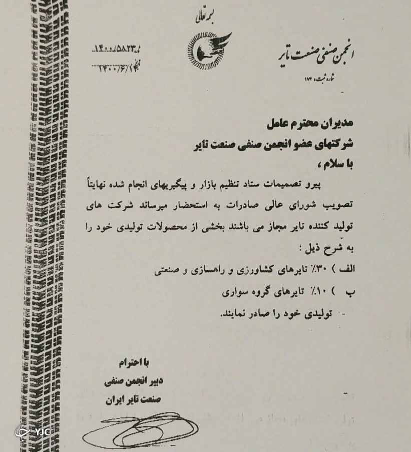 شرکتهای تولیدکننده تایر مجاز هستند بخشی از محصولات تولیدی خود را صادر کنند.