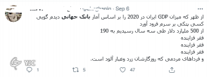او گفت: در حال حاضر بخش عمدهای از اطلاعاتی که بانک جهانی ارائه میدهد درست بوده، زیرا تولید ناخالص داخلی با بالا رفتن قیمت دلار کاهش پیدا کرده است. زمانی این تولیدات، دو برابر گفته شده بود که نوسانات قیمتی در بازار ارز، باعث کاهش پیدا کردن این مقدار شد.