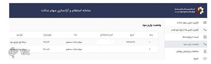 استعلام آنلاین وضعیت پرداخت سود سهام عدالت