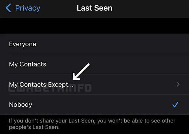 به گزارش سایت طلا ، واتساپ چند سال پیش تنظیمات حریم خصوصی جدیدی معرفی کرد که به کاربران اجازه می دهد تنظیمات مربوط به این که چه کسانی می توانند تصویر پروفایل آنها را مشاهده کنند، درباره (About) و آخرین بازدید (Last Seen) را تغییر دهند. هر کدام از این موارد می تواند بین گزینه های "همه"، "تماسهای من" یا "هیچکس" تنظیم شود که سطح کنترل بالایی نبود. اما اکنون اپل پارامتر جدیدی برای "آخرین بازدید" معرفی کرده که "تماسهای من بجز" (My Contacts Except) نام دارد و به کاربران امکان می دهد تماسهای خاصی که مایل نیستند آخرین حضور آنلاین آنها را مشاهده کنند را بلاک کنند.