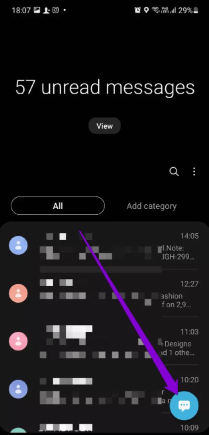 قدم اول: اپلیکیشن Samsung Messages را باز کنید. حالا گزینه Compose Message را برای نوشتن یک پیامک تازه بزنید یا اینکه مکالمهای قدیمی را باز کنید.