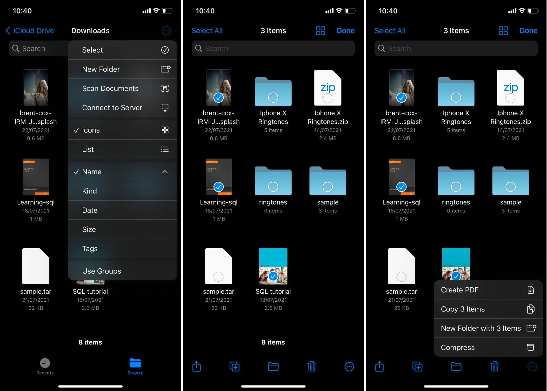 برای تبدیل کردن فایلهای مختلف به یک فایل زیپ در آیفون یا آیپد میتوانید از اپلیکیشن Files استفاده کنید. برای اینکار مراحل زیر را به ترتیب دنبال کنید:
