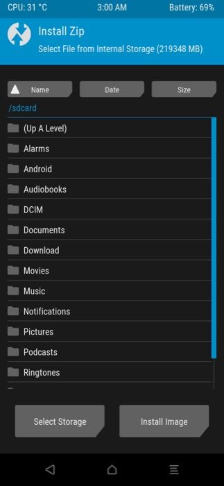 پس از اتمام کار، به منوی اصلی TWRP بازگردید و Install را انتخاب کنید. به مکانی که فایلهای ROM و GApps را در آن ذخیره کرده اید بروید. ابتدا ROM را انتخاب کرده و برای نصب آن، انگشت خود را بکشید.