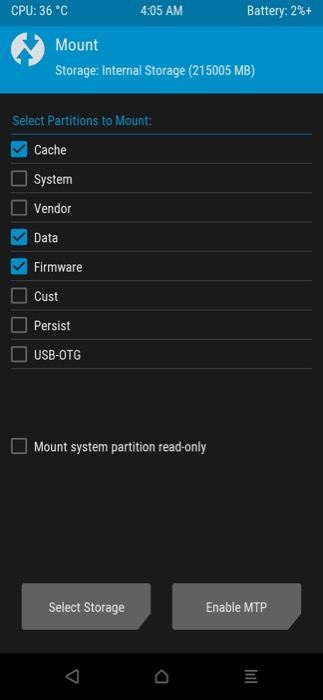 می توانید این کار را از داخل TWRP انجام دهید. به قسمت Mount بروید و گزینه Enable MTP را انتخاب کنید.