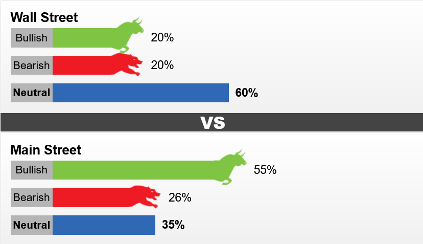 در میان سرمایه گذاران نظرسنجی متفاوت بود و آرای صعودی بیشترین آرا را تشکیل می دادند اما با این وجود احساسات صعودی قیدرتمندی در میان آنها وجود ندارد چراکه مشارکت در این نظرسنجی توسط سرمایه گذاران به پایین ترین حد خود از سال 2019 رسیده است.