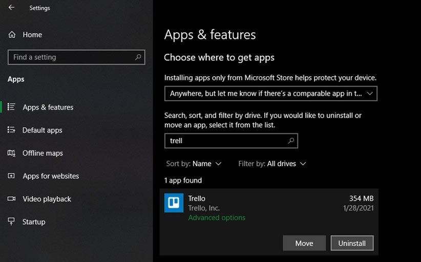 در ویندوز ۱۰ به راحتی میتوانید به لیست برنامههای نصب شده دسترسی داشته باشید. برای این کار، کلیدهای Windows + i را بفشارید تا راهی بخش Settings شوید و سپس به قسمت Apps و در نهایت Apps & features سر بزنید. در این صفحه لیست کاملی از تمام برنامههای نصب شده در سیستم را میتوانید ببینید.