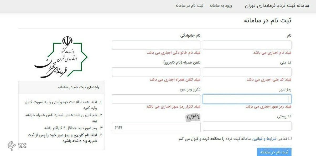 شرایط و قوانین سامانه ثبت درخواست تردد فرمانداری تهران