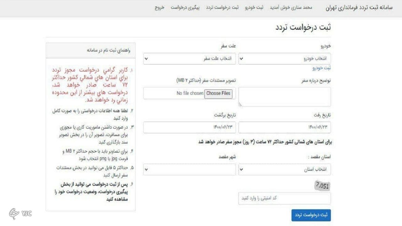 شهروندان میتوانند برای دریافت مجوز تردد بین استانی به سامانه تهران تردد مراجعه و درخواست خود را ثبت کنند.