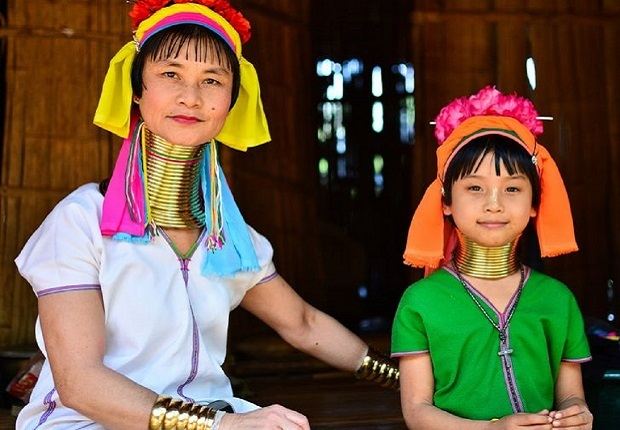 گردنهای دراز نماد زیبایی قوم کایان هستند. این سنت، ریشههای مختلفی دارد و بسیاری بر این باورند که در روزگار دور، این کار زنان را از بردگی محافظت میکرده است. با این حال، برخی میگویند که گردنهای دراز، آنها را به اژدها شبیه میساخته است و اژدها در داستانهای فولکلور، شخصیتهای مهمی بودهاند.