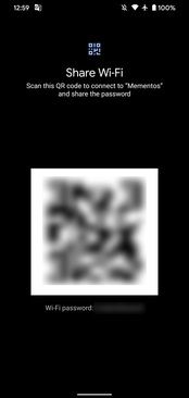 در این صفحه، بخش Share را انتخاب کنید. شما باید اثرانگشت یا چهره خود را تایید کرده یا پین کد را وارد کنید تا امکان رفتن به مرحله بعد وجود داشته باشد. پس از انجام این کار، گذرواژه شبکه وای فای زیر یک کیوآر کد نمایش داده خواهد شد.
