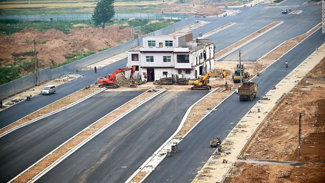 درست در وسط جاده تازه احداث شده در چین خانهای مسکونی قرار گرفته است. یک زوج سالخورده به دلیل نارضایتی از مبلغ غرامت پیشنهادی به آنها، اجازه تخریب خانه خود را ندادند. در نتیجه خانه آنها در وسط بزرگراه باقی ماند. که این خود جزو خانه های عجیب اما واقعی است.