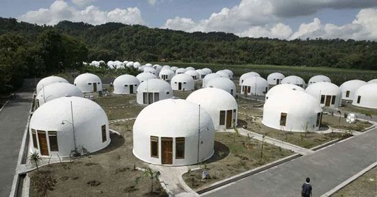 بعد از اینکه بسیاری از روستاییان اندونزی خانههای خود را در اثر زلزله سال ۲۰۰۶ از دست دادند، یک شرکت حدود ۷۰ پناهگاه گنبدی شکل جدید برای آنها بنا کرد.