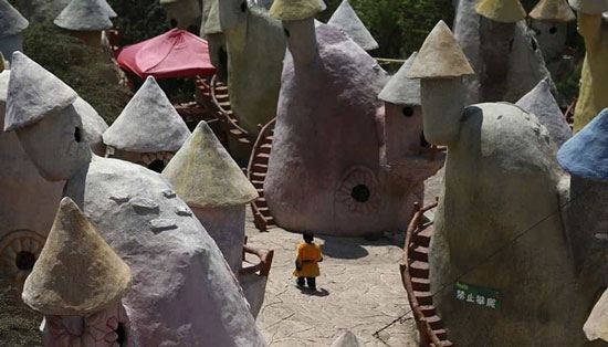 خانههای قارچی شکل برای بیش از ۱۰۰ انسان با قد کوتاهتر از ۱۵۱ سانت در یکی از پارکهای چین ساخته شده است.