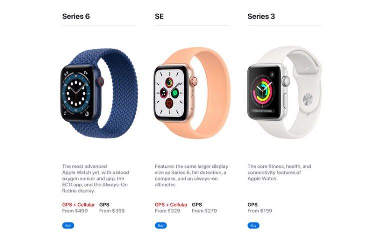 اول از همه باید بگوییم که اپل جدیدترین ساعت هوشمند خود را به صفحهی مقایسه در سایت خود اضافه نکرده است. در این صفحه از بین مدلهای جدید فقط شاهد نسل ششم و مدل SE اپل واچ هستیم. بنابراین در این قسمت نمیتوانیم تمام جزئیات مربوط به نسل هفتم اپل واچ را مشاهده کنیم.