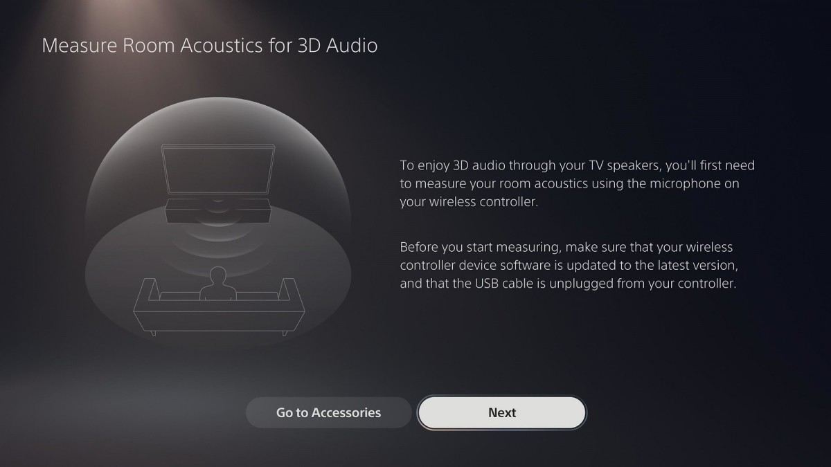 تغییر بزرگ بعدی مربوط به صدای سهبعدی است که حالا پشتیبانی از پخش در بلندگوهای استریو تلویزیونی را به ارمغان میآورد. پلی استیشن ۵ برای انجام این کار باید ویژگیهای آکوستیک اتاق را از طریق میکروفن کنترلر دوآلسنس بررسی کند. همچنین، اگر از هدست بیسیم Pulse 3D استفاده میکنید، حالا میتوانید از بخش Sound Controls به تنظیمات اکولایزر دسترسی داشته باشید.